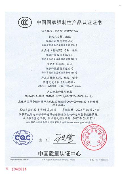 便攜式發(fā)卡機CCC證書