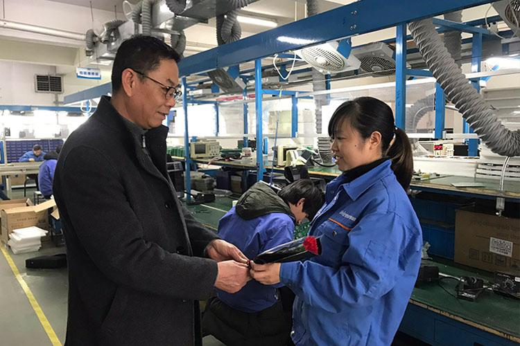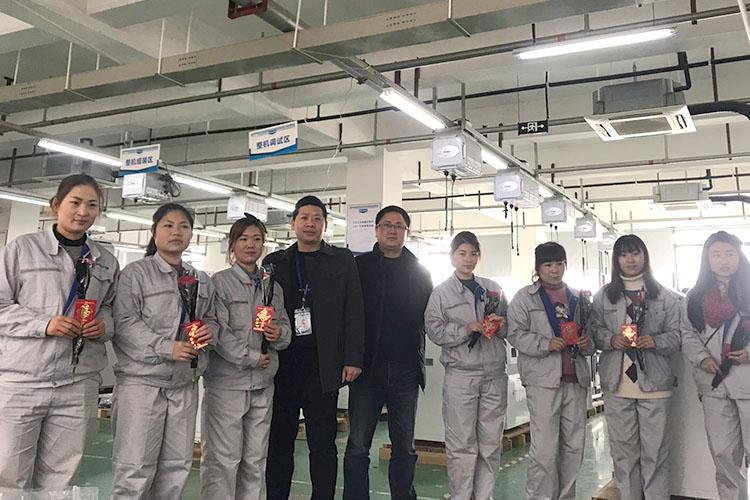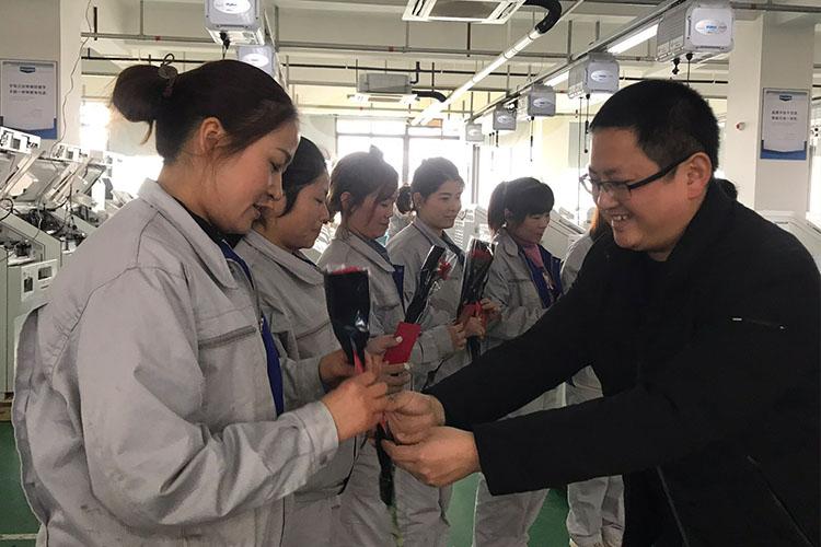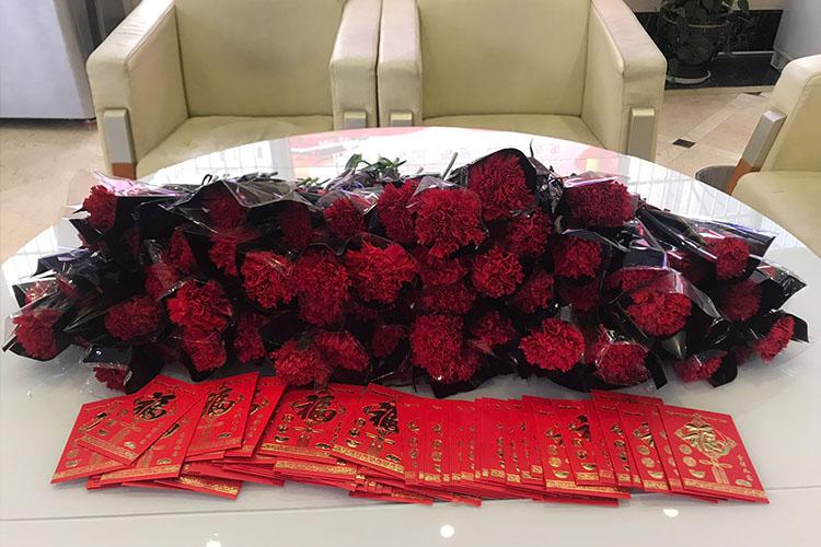 3月8日上午,維融科技領導,集團公司黨支部書記、工會主席一行前往各部門、各車間,為工作在各崗位的女職工送上鮮花和紅包,并獻上節日祝福。